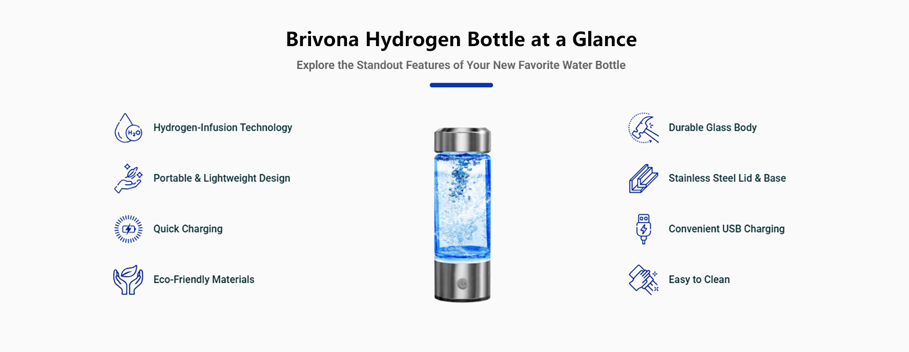 Brivona makes staying properly hydrated more convenient and eco-friendly. Its USB charger lets you power up anywhere, while the durable, reusable glass body reduces your reliance on single-use plastic bottles.