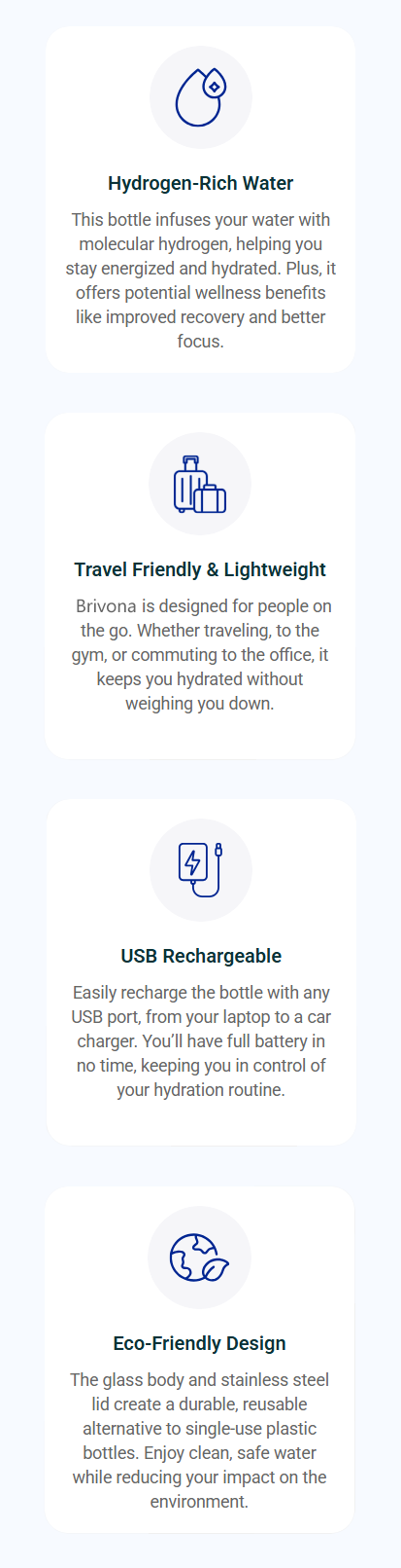 Using Brivona has been fantastic for me! I always felt sluggish after my workouts and struggled with hard recoveries but then my trainer recommended trying hydrogen water. Since I started drinking from this bottle I’ve noticed I’m way more energized throughout the day. My skin’s also looking clearer, and I feel more focused than ever. I love it!!