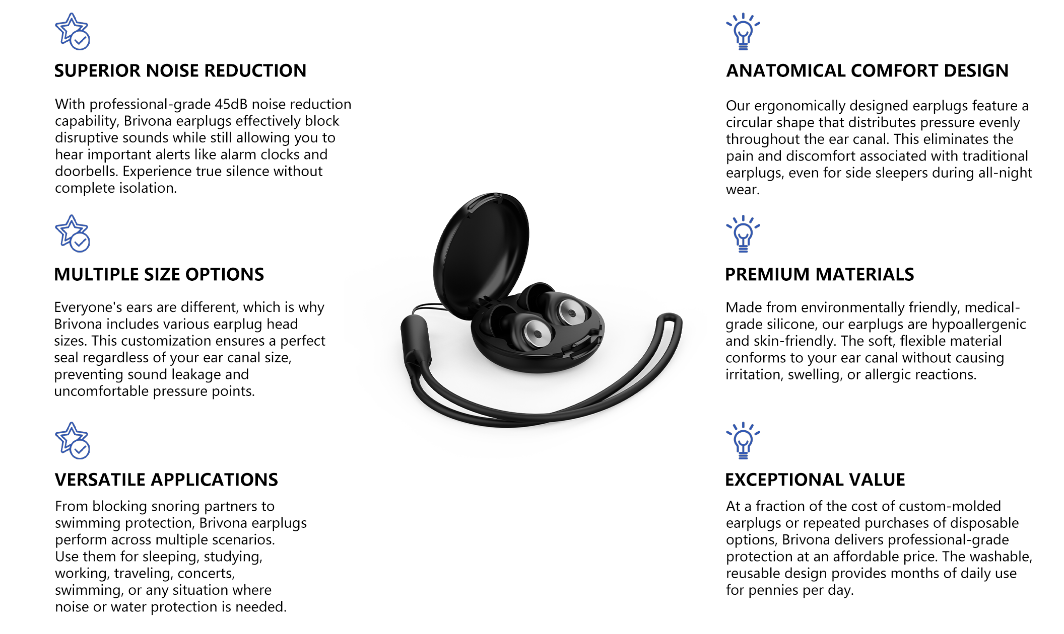 Brivona earplugs go beyond bedtime use with their versatile, waterproof design. Use them for peaceful sleep, concentrate in noisy work environments, protect your hearing at concerts or loud events, block distractions while studying, or keep water out while swimming. Their durable construction and washable materials make them ideal for daily use across all these scenarios.