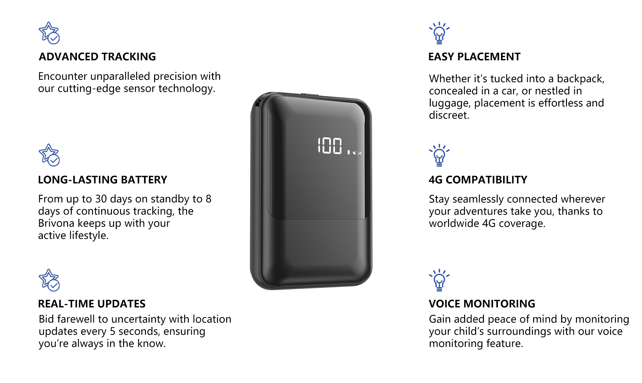 The Brivona GPS Tracker boasts an impressive 30 days of standby time and up to 8 days with full-day tracking, so you can worry less about recharging.